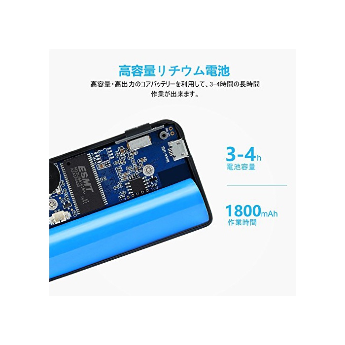 【전지 용량】리튬 전지 용량은 1800mAh,LED라이트를 점등시키지 않고 3-4시간의 장시간 작업 를 할 수 있습니다.다른 유사 제품과 비교해 큰폭으로 개선 합니다.