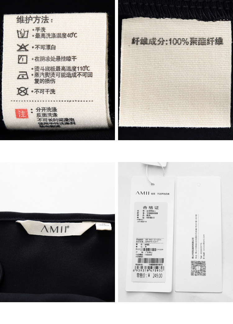 | 洗涤标准: | 40℃以下手洗110℃以下垫布熨烫不可漂白悬挂晾干不可干洗不可浸泡 |