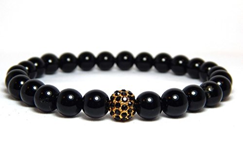 -. Title : Black Onyx Gemstone Mens Beaded Swarovski Crystal Pave Bracelet