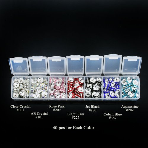 - Color: #001 Clear Crystal, #101 AB Crystal, #209 Rose Pink, #227 Light Siam Red, #280 Jet Black, #369 Cobalt Blue, #202 Aquansrine. Each Color 40 pcs, total 280 pcs