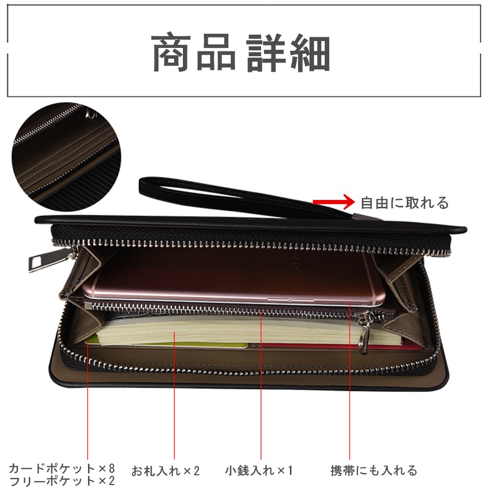 Card pocket × 8, money insertion × 2, coin purse × 1, free pocket on 2 sides on both sides, responding to fine storage requirements.