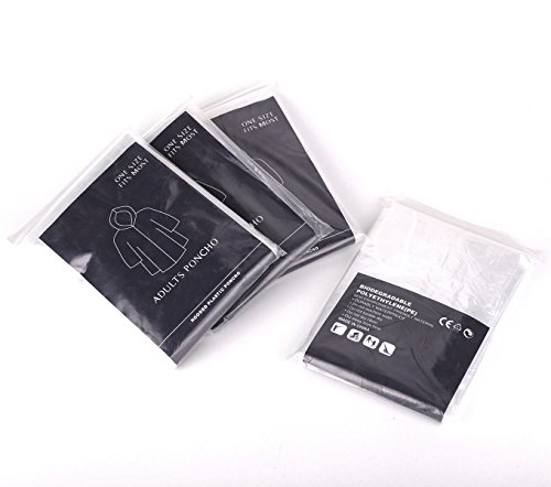 Zelta Adults Waterproof Disposable Rain Poncho with Drawstring Hood for Outdoor Travel, 4 Pcs