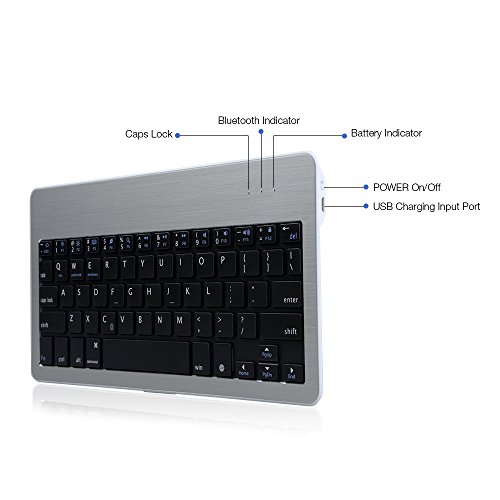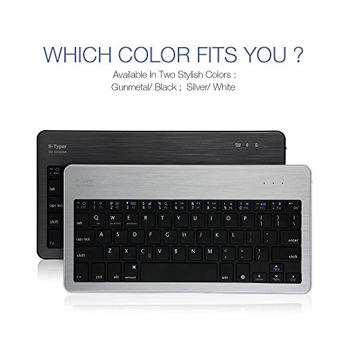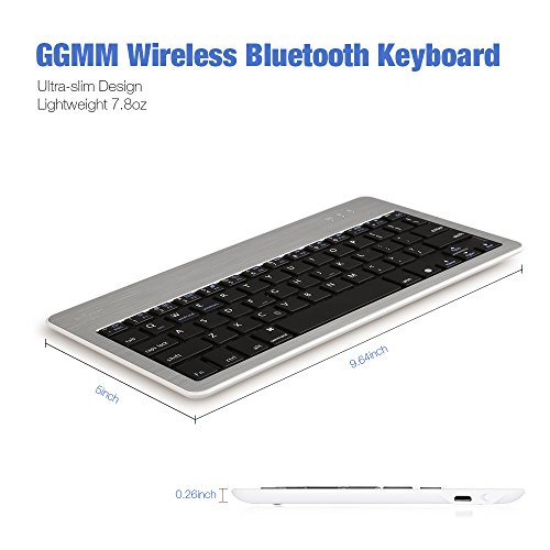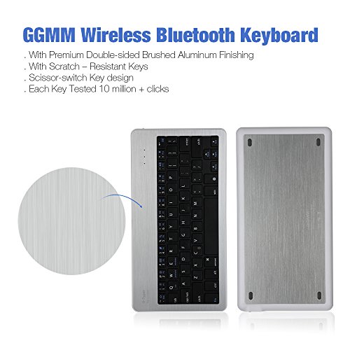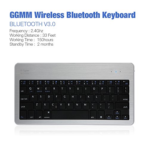 GGMM B-Typer "Lifetime Warranty" Wireless Bluetooth Ultra-Slim Aluminum Rechargeable Compact Keyboard | iOS, OSX, Windows, Android, iPad, iPhone, Samsung Galaxy Tab, Google Nexus (Silver)