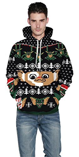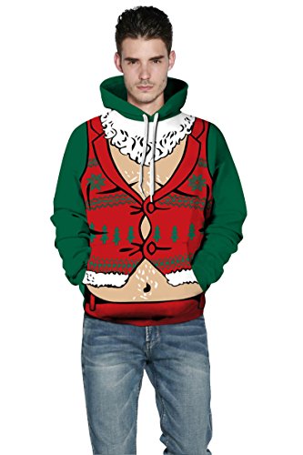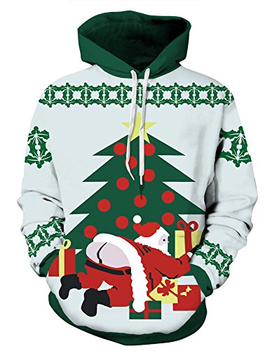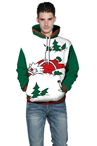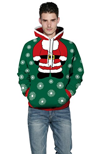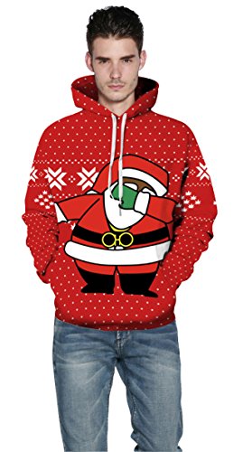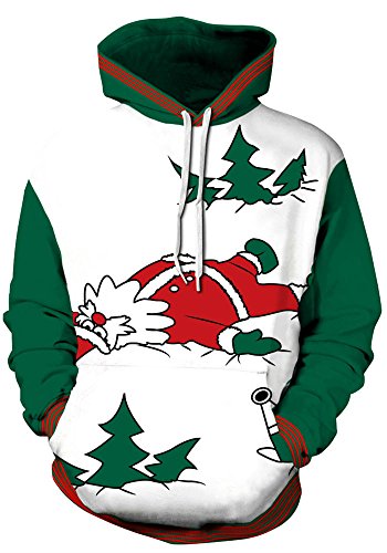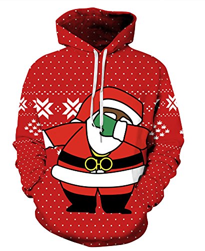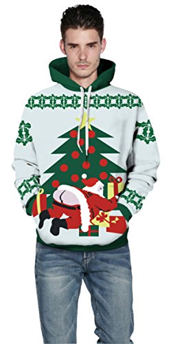 Grace's Secret Couple 3D Santa Print Ugly Christmas Kangaroo Pocket Sweatshirt Hoodies Pullover Christmas Boy L/XL