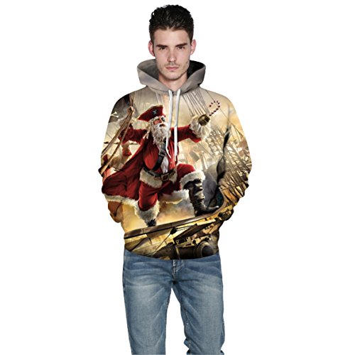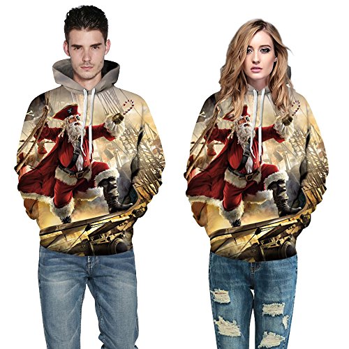 Grace's Secret Couple 3D Santa Print Ugly Christmas Kangaroo Pocket Sweatshirt Hoodies Pullover Captain Santa S/M
