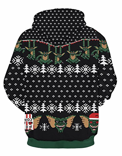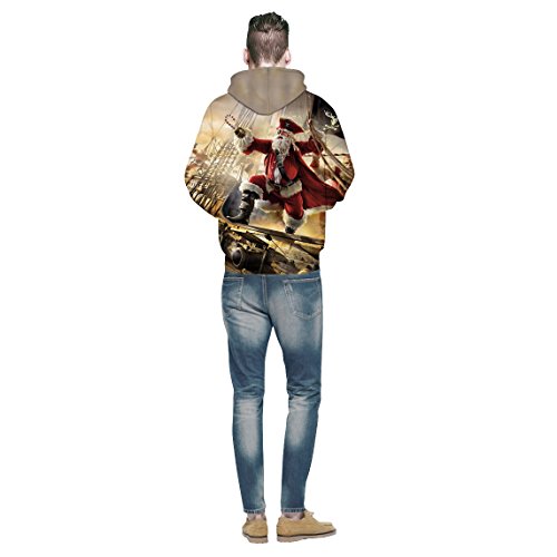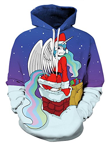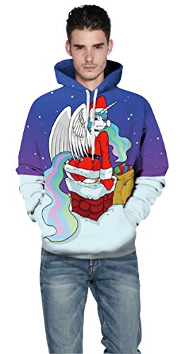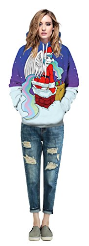 Grace's Secret Couple 3D Santa Print Ugly Christmas Kangaroo Pocket Sweatshirt Hoodies Pullover Santa Unicorn L/XL