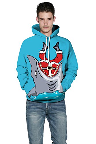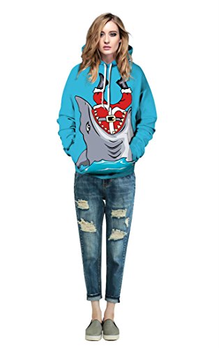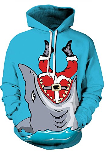 Grace's Secret Couple 3D Santa Print Ugly Christmas Kangaroo Pocket Sweatshirt Hoodies Pullover Big Shark L/XL