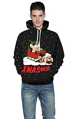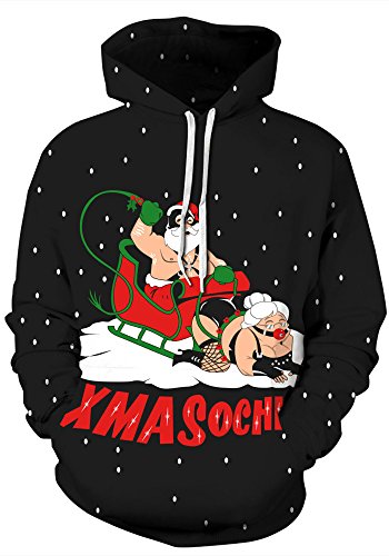Grace's Secret Couple 3D Santa Print Ugly Christmas Kangaroo Pocket Sweatshirt Hoodies Pullover Xmas Sochi L/XL