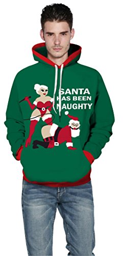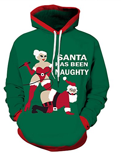 Grace's Secret Couple 3D Santa Print Ugly Christmas Kangaroo Pocket Sweatshirt Hoodies Pullover Naughty Santa L/XL