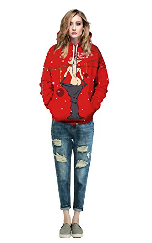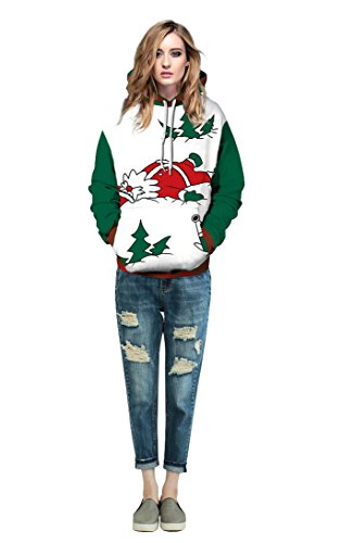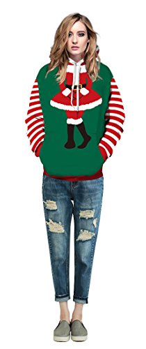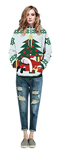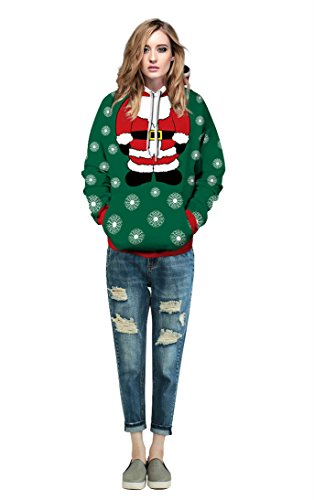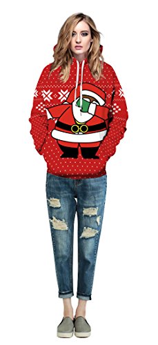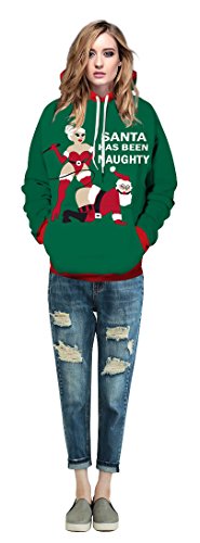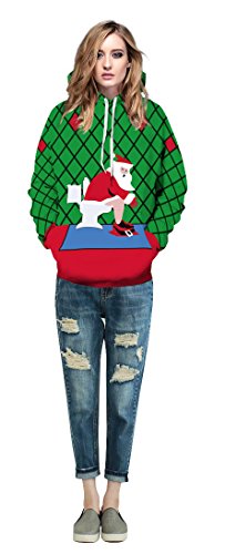 Grace's Secret Couple 3D Santa Print Ugly Christmas Kangaroo Pocket Sweatshirt Hoodies Pullover Christmas Girl L/XL