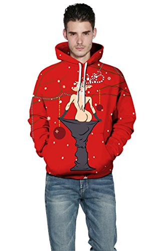 Grace's Secret Couple 3D Santa Print Ugly Christmas Kangaroo Pocket Sweatshirt Hoodies Pullover Sexy Reindeer L/XL