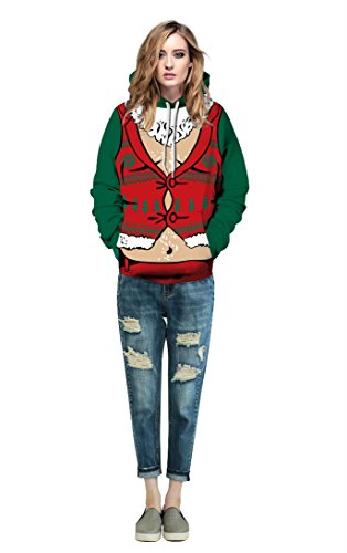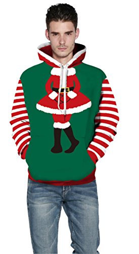 Grace's Secret Couple 3D Santa Print Ugly Christmas Kangaroo Pocket Sweatshirt Hoodies Pullover Elf L/XL