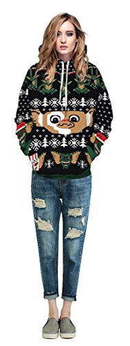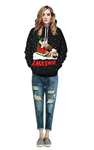 Grace's Secret Couple 3D Santa Print Ugly Christmas Kangaroo Pocket Sweatshirt Hoodies Pullover Christmas Girl S/M
