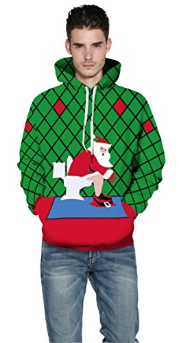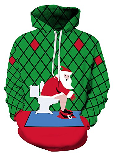 Grace's Secret Couple 3D Santa Print Ugly Christmas Kangaroo Pocket Sweatshirt Hoodies Pullover Santa In Toilet L/XL