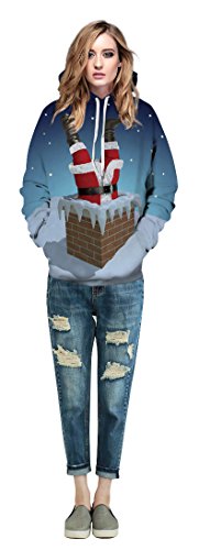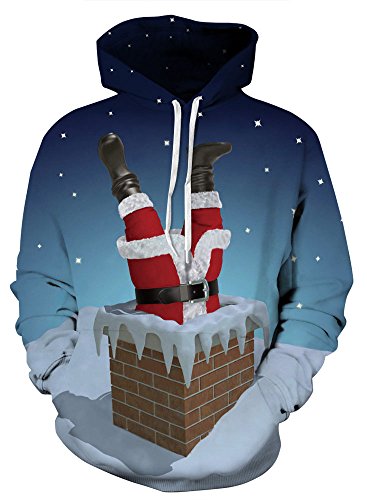 Grace's Secret Couple 3D Santa Print Ugly Christmas Kangaroo Pocket Sweatshirt Hoodies Pullover Santa In Chimney L/XL