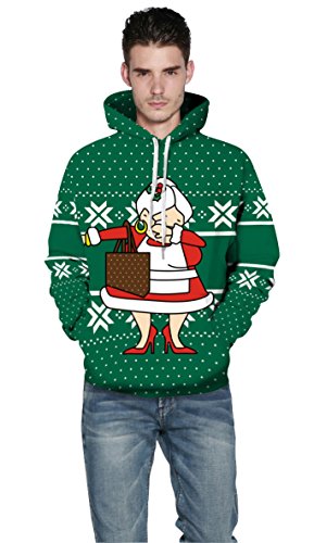 Grace's Secret Couple 3D Santa Print Ugly Christmas Kangaroo Pocket Sweatshirt Hoodies Pullover Mrs. Claus L/XL