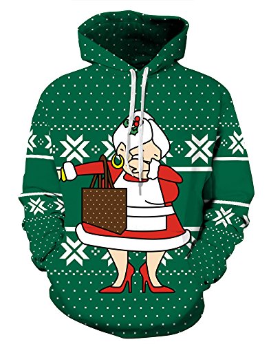 Grace's Secret Couple 3D Santa Print Ugly Christmas Kangaroo Pocket Sweatshirt Hoodies Pullover Mrs. Claus S/M