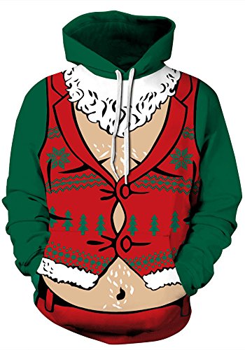 Grace's Secret Couple 3D Santa Print Ugly Christmas Kangaroo Pocket Sweatshirt Hoodies Pullover Christmas Vest S/M