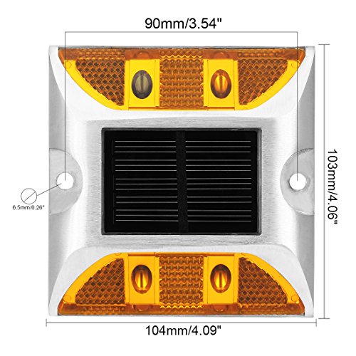 uxcell 2pcs LED Solar Road Stud Light Marker Lighting Security Warning Lamp 4LED Yellow