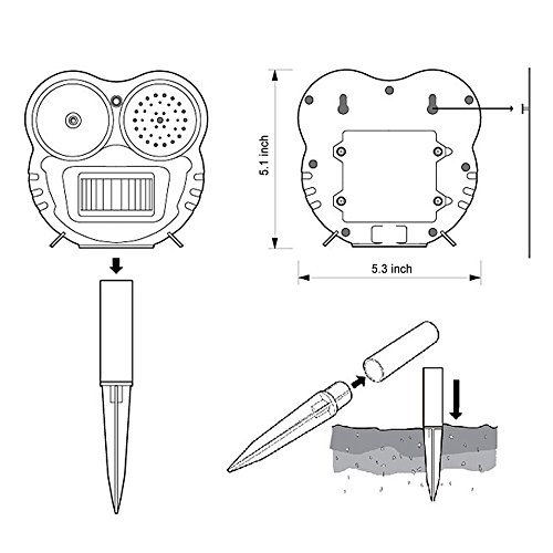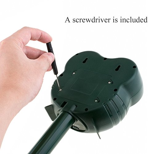 -. Feature : Eco-friendly - Anpro Ultrasonic animal repeller does no harm to animals. Just delivering one kind of sound to keep them away. / Easy Installation - Mounting on the wall for indoor middle animal control in attics, basements or garages. Or Insert ground stake to keep them out of gardens, trash receptacles, patios and lawns. / Motion Activited - Animal deterrent device remains in stand-by mode until activated. LED lights flash and ultrasonic speaker sounds for 5 seconds to keep pests away. This repellent only works for middle-sized animals, such as dog, cat, raccoon and etc.. / Battery Powered- Using battery powered method replace of solar powered in case of the unstability the caused by solar power. (Batteries not included) / Large Coverage Area - Animal deterrent repels unwanted middle-sized animals within 26ft. and 110 degree coverage area. Requires 4 AA batteries for operation. (Batteries not included)