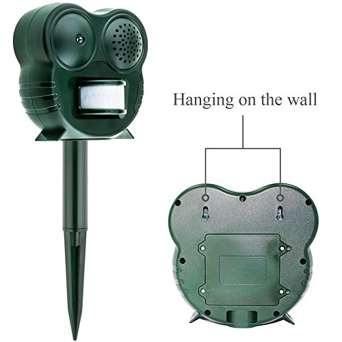 -. Title : Anpro Humane Animal Repellent with Motion Activated LED Light and Ultra-sonic Deterrent for Cats, Dogs, Squirrels, Deer, Raccoons, Skunks, Rats, Home and Garden Protection, Battery Operated