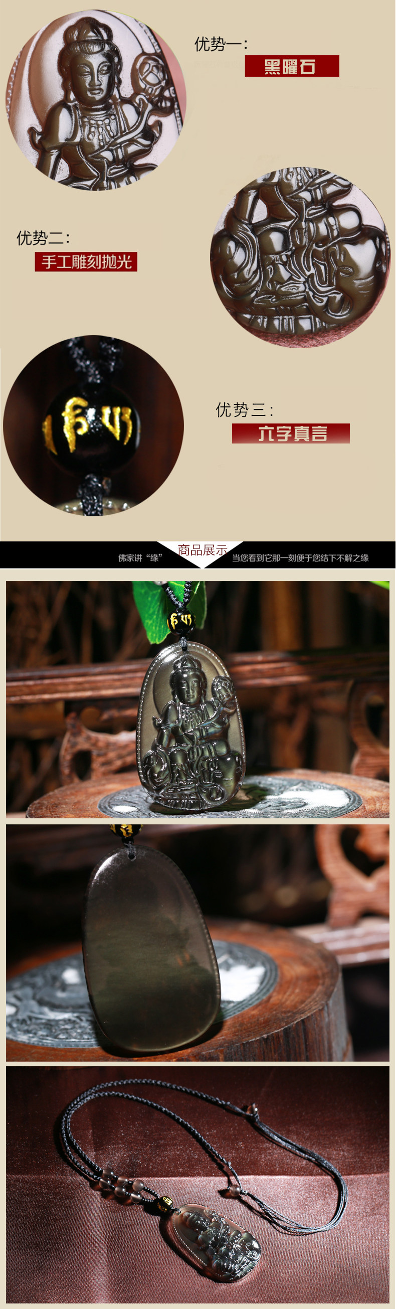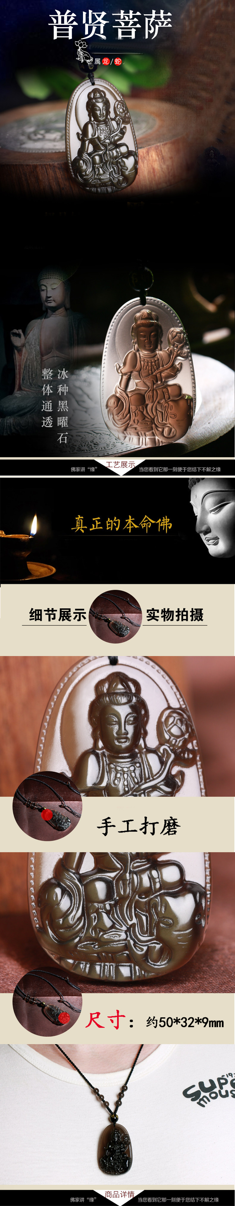 开光天然冰彩黑曜石普贤菩萨吊坠男女项链 生肖属龙蛇本命佛挂件