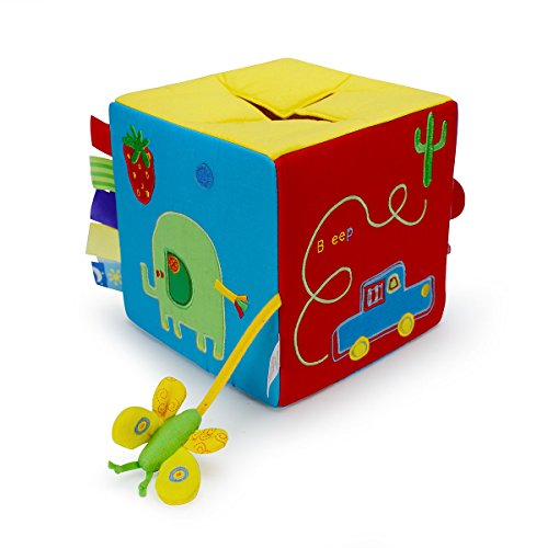 -. Feature : SurP.R.Ise! What's Inside Toy Box - features: / Fun, put-and-take out sensory game / High quality cloth covered toy box 7 inch. Cube / Includes 8 soft-sculpture toys with fun textures & sounds / For Babies & Toddler - ages 3 months and up