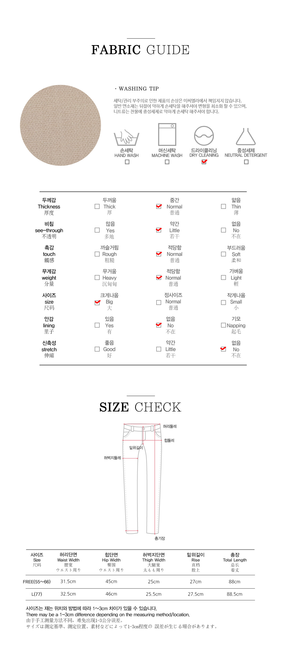 77사이즈까지 무난하게 착용 가능하구요