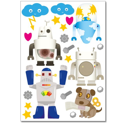 Wandkings wall stickers Robots Sticker Set – 40 stickers on 2 US letter sheets (each 8.3 x 11.7 inch)