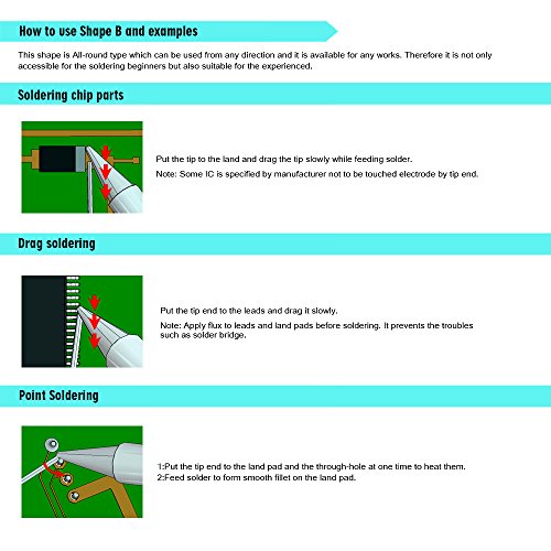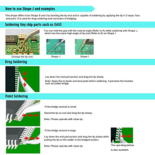 - 【TIPS KNOWLEDGE SUGGESTION】Listed few soldering iron tips knowledge on photos, but suggest to learn more welding knowledge on how to do soldering jobs and maintain the tools.