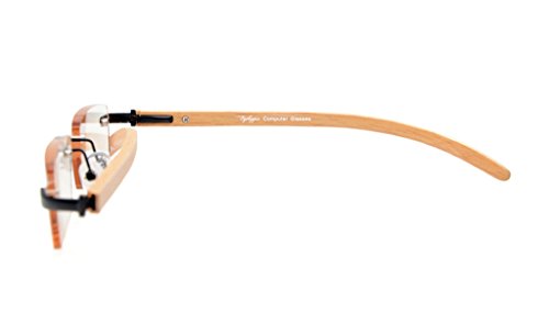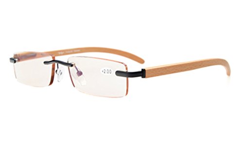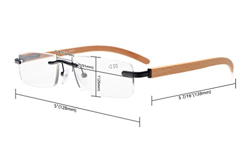 Eyekepper Computer Small Lens Rimless for Men And Women In Wood Temple Arms And Spring Hinges Reading Glasses Black +2.25