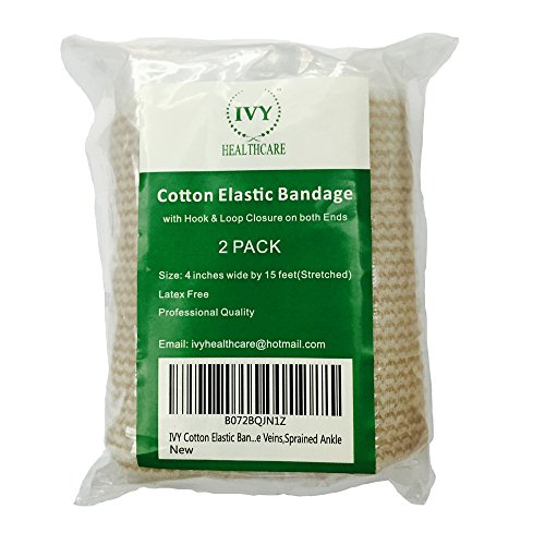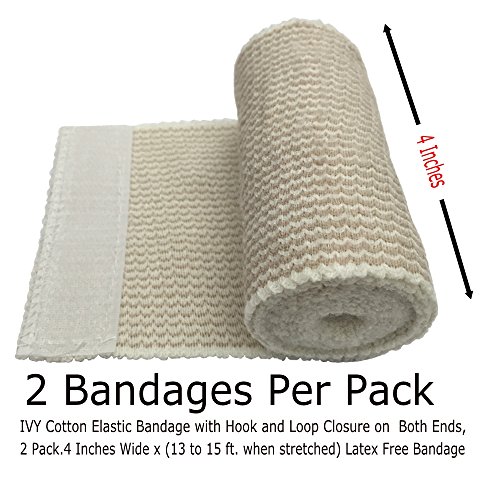IVY Cotton Elastic Bandage with Hook and Loop Closure on Both Ends, 2 Pack. 4 Inches Wide x (13 to 15 ft. when stretched) Latex Free Bandage....