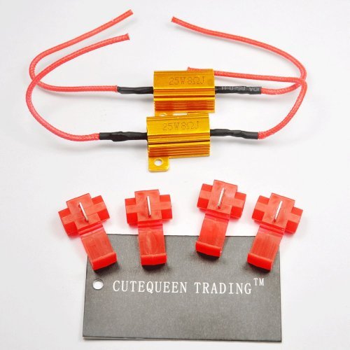 CUTEQUEEN TRADING 2PCS 25W 8Ohm LED Load Resistors for LED Turn Signal Lights or LED License Plate Lights or DRL (Fix Hyper Flash, Warning Cancellor) with 4pc Quick wire Clip