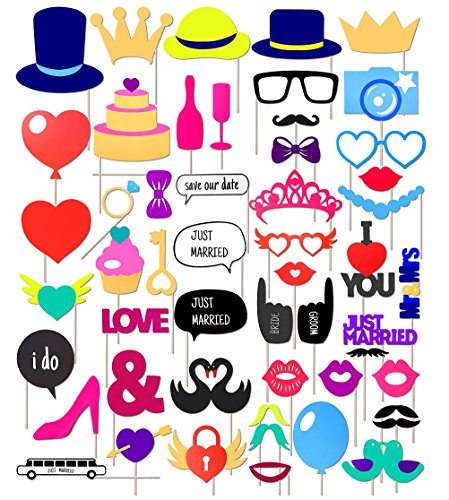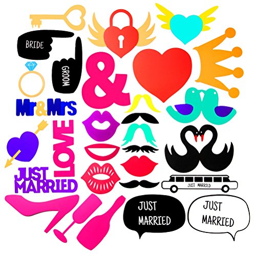 - ❤ Package: 53 pieces wedding photo props with sticks, glue. Note: EASY ASSEMBLE IS NEEDED!