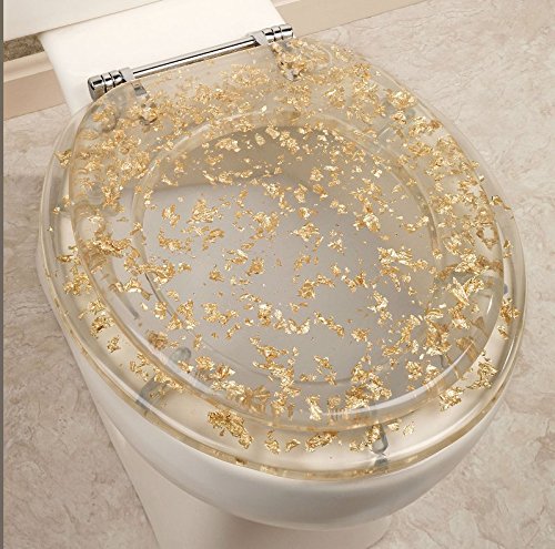 Ginsey Standard Resin Toilet Seat with Chrome Hinges, Gold Foil