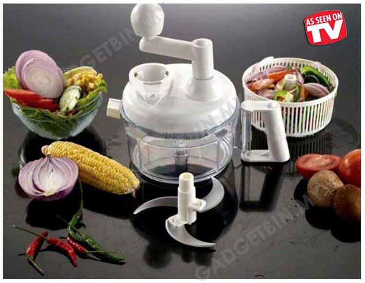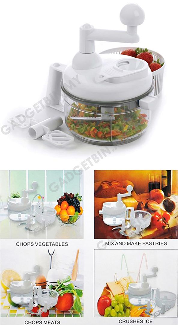Swift Chopper Manual Food Processor This Swift Chopper is a uniquely designed manual food processor which makes salad, salsa, fruit sauces, baby food, milkshakes, ice-cool drinks, dressings, sauces, soup and stews, hamburgers, omelets and pancakes. This chopper has the convenience of a large handle and an egg white separator attachment to make cooking easier for everyone, and this product does not require electricity which makes it safer to use compared with its electrical counterparts.