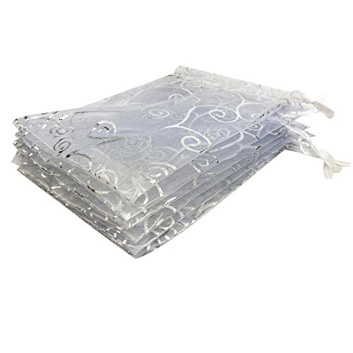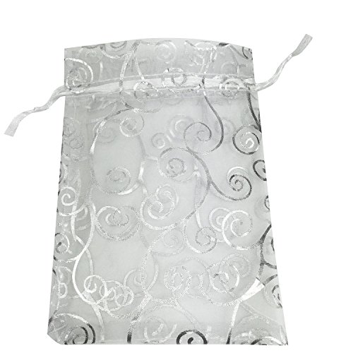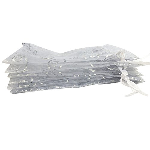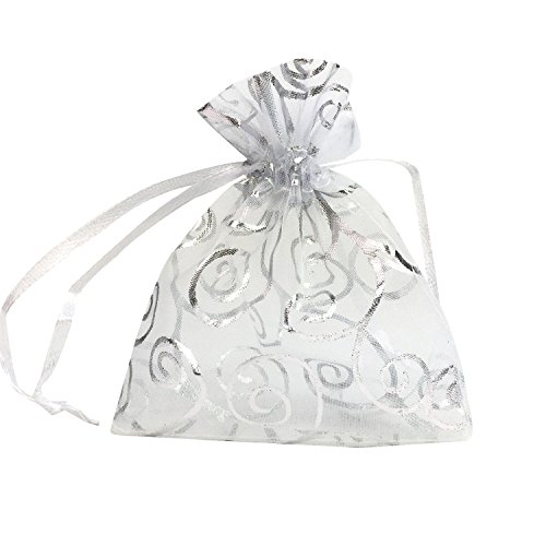 YIJUE 100pcs 3x4 Inches Drawstrings Organza Gift Candy Bags Wedding Favors Bags (White with Silver)
