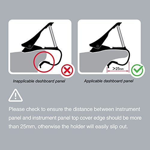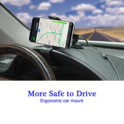 - EXCELLENT VIEW: Thanks to HUD Design, The Phone Mount Located In the Edge of Car Dashboard, Keep Your Eyes and Phone Screen In Line with Road, Let You Are Close to Phone Screen, But Never Block Your View, One Hand Operation, More Safety for Driving