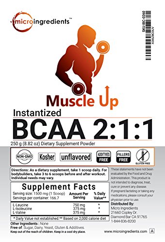 Micro Ingredients Instant BCAA 2:1:1 Powder. (Ratio for L-Leucine, L-Isoleucine and L-Valine).