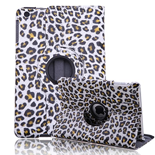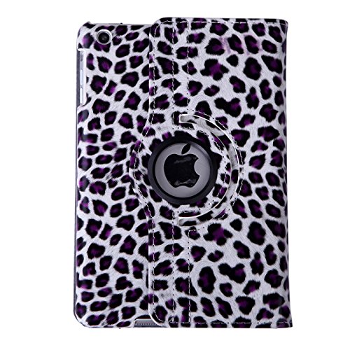 HDE 360° Rotating Leather Folding Folio Case Stand Cover for iPad Mini 1/2/3 and Retina Tablet (Purple & White Leopard Print)