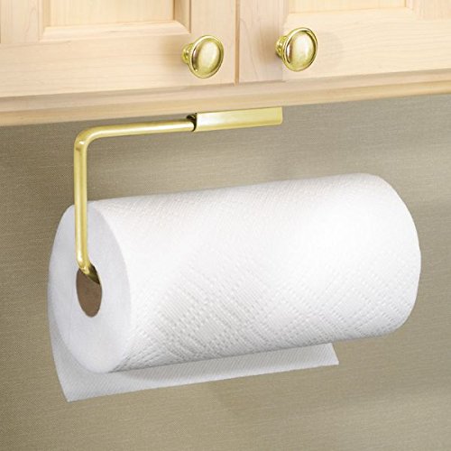 mDesign Wall Mount Paper Towel Holder for Inside Kitchen Cabinets – Gold/Brass