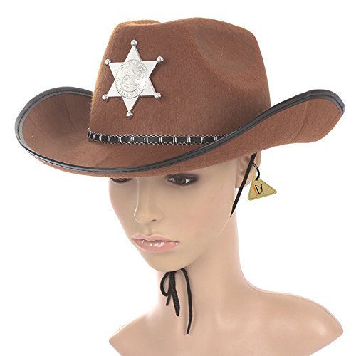 -. Title : New Brown Sheriff Cowboy Hat Felt Costume Star Badge Halloween