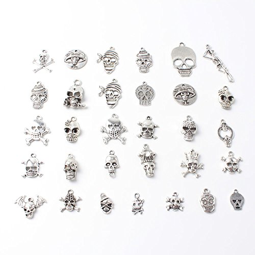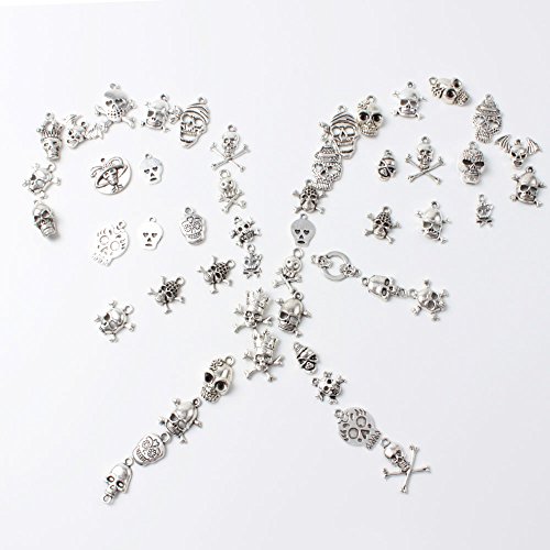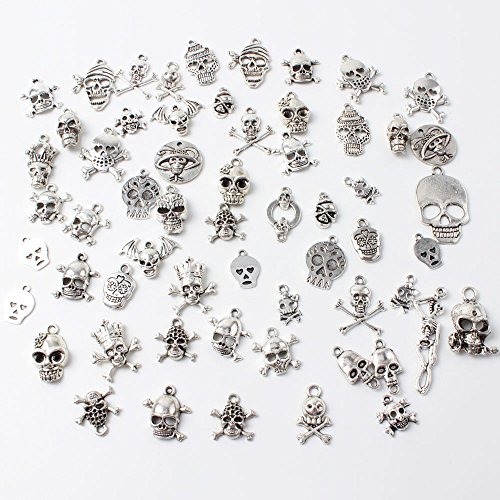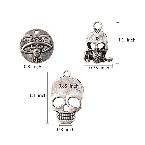 Teenitor 100 Gram Mixed Shape Skeleton Pirate Shield Theme Assorted Antique Charms Pendant for Crafting, Jewelry Making Accessory - Silver