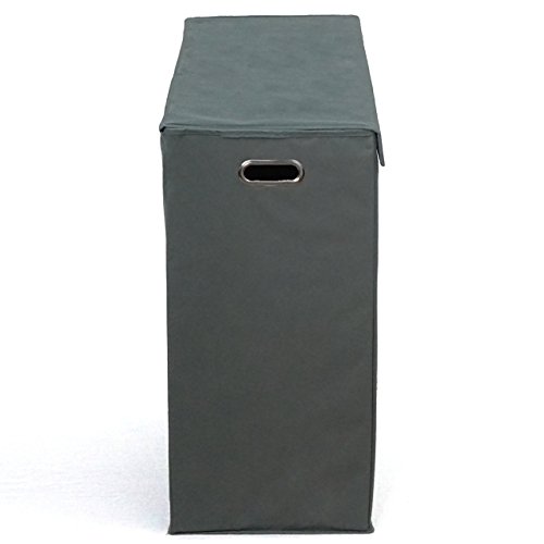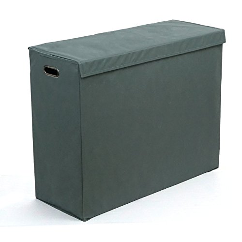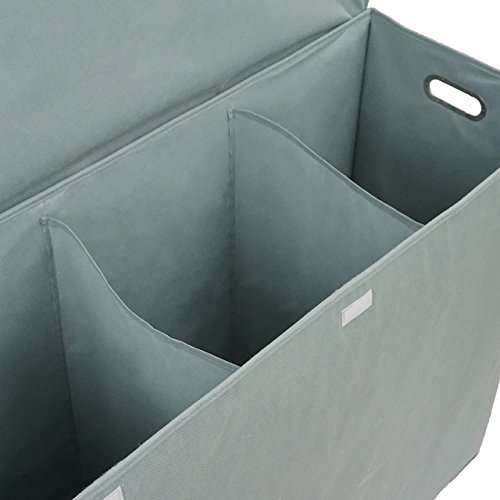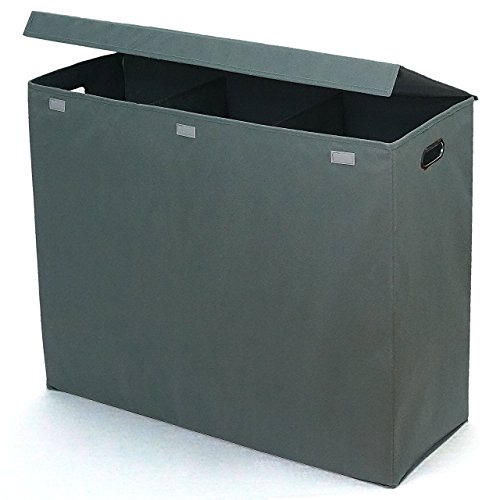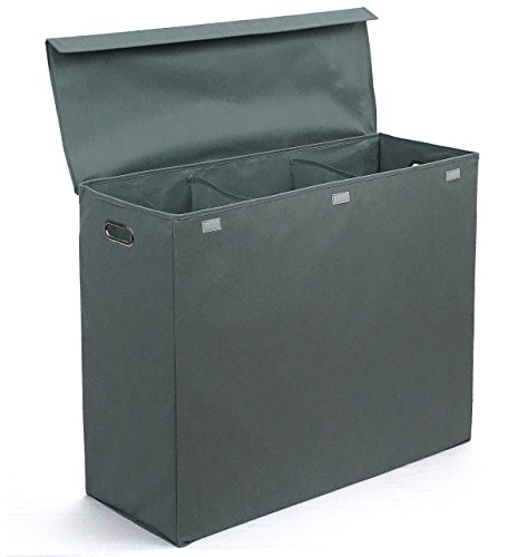 Three Compartment Laundry Hamper with Stiff Sides, Lid, and Metal Handles by Rhine House