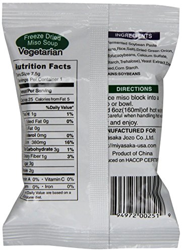 Miyasaka Freeze Dried Vegetarian Miso Soup, 0.27-Ounce (Pack of 12)