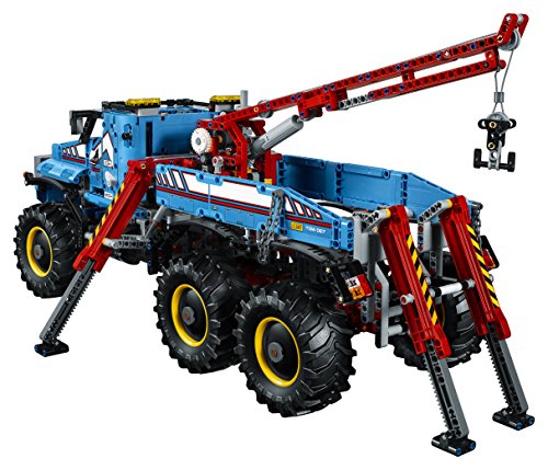 Build your own 6x6 All Terrain Tow Truck, complete with two Power Function motors, battery box, and remote for remote controlled-functions including drive, front steering, extendable outriggers and a working crane and winch!