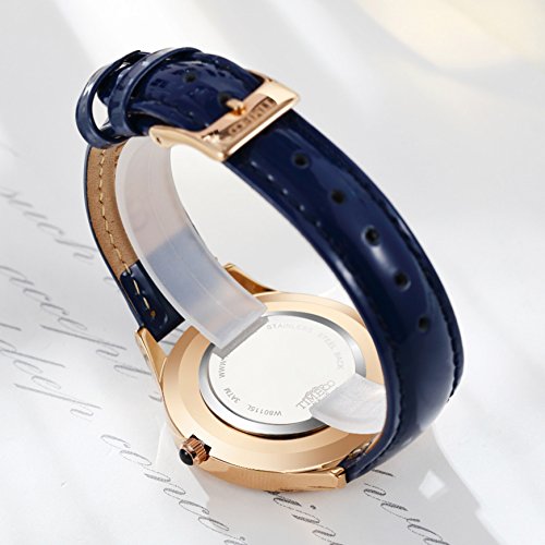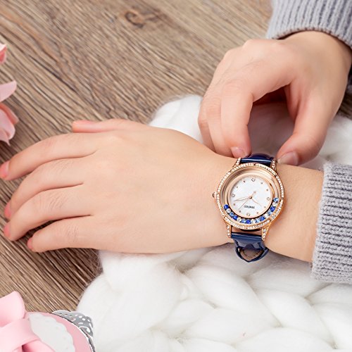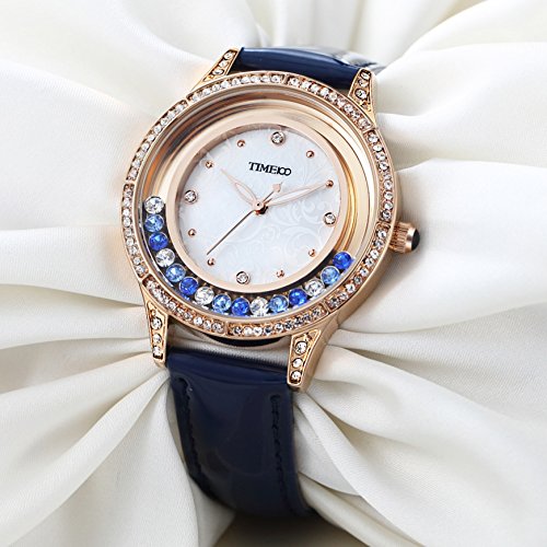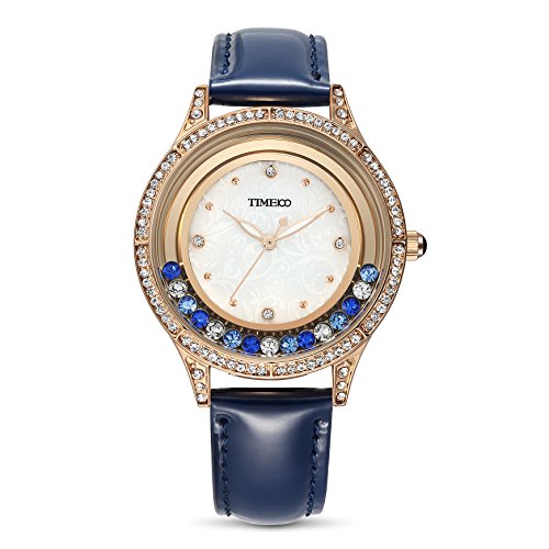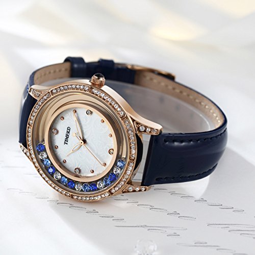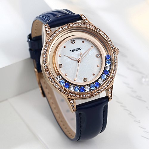 Time100 Women Black Leather Band Diamond-Set Waterproof Analog Quartz Fashion Watch
