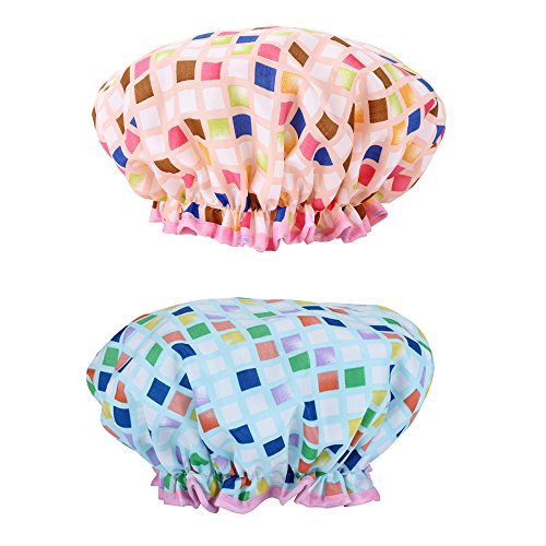 -. Title : Akobearla Shower Cap, Waterproof Bath Shower Hat, Trendy Fashion Double Layer EVA Bathing Shower Caps for Women, Pack of 2, Blue&Pink