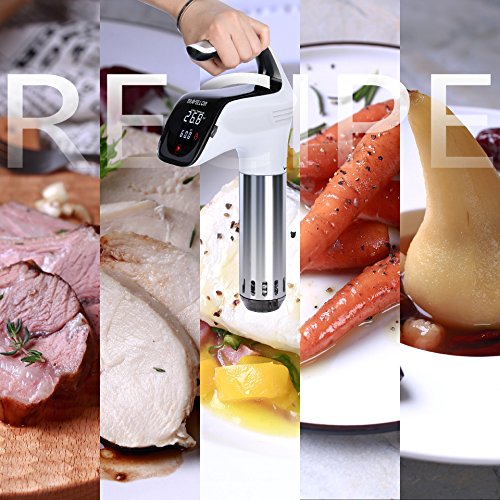 PERFECT PRECISION AND TIME CONTROL : Digital control of temperature(25-99.9℃)(77°F-211.8°F) and time ; precise temperature control(+/-0.1℃) allows food to be cooked at the exact doneness you want ;Heats and circulates up to 4 gallons of water