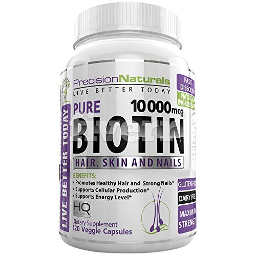 -. Binding : Health and Beauty -. Brand : Precision Naturals -. Feature : 100% SATISFACTION GUARANTEE TRY RISK FREE - 100% Money back guarantee: Feel great or your money back! Every purchase is backed by our 1 year empty bottle guarantee - If you are not fully satisfied for any reason we will refund your order, no questions asked!! / BIOTIN is a NECESSITY for ANYONE wishing to improve the health of his/her SKIN / Promotes HAIR REGENERATION / Supports THYROID & ADRENAL Function / Biotin PROTECTS BRAIN FUNCTION -. IsAdultProduct : 0 -. Label : Precision Naturals -. Manufacturer : Precision Naturals -. ProductGroup : Health and Beauty -. ProductTypeName : HEALTH_PERSONAL_CARE -. Publisher : Precision Naturals -. Studio : Precision Naturals -. Title : Biotin 10000mcg - 60 Count - Hair Skin and Nails Formula - Maximum Strength Capsules : Made With Nature's Best Hair Growth Supplement - Longer, Healthier and Stronger Hair and Nails - Veggie Capsules